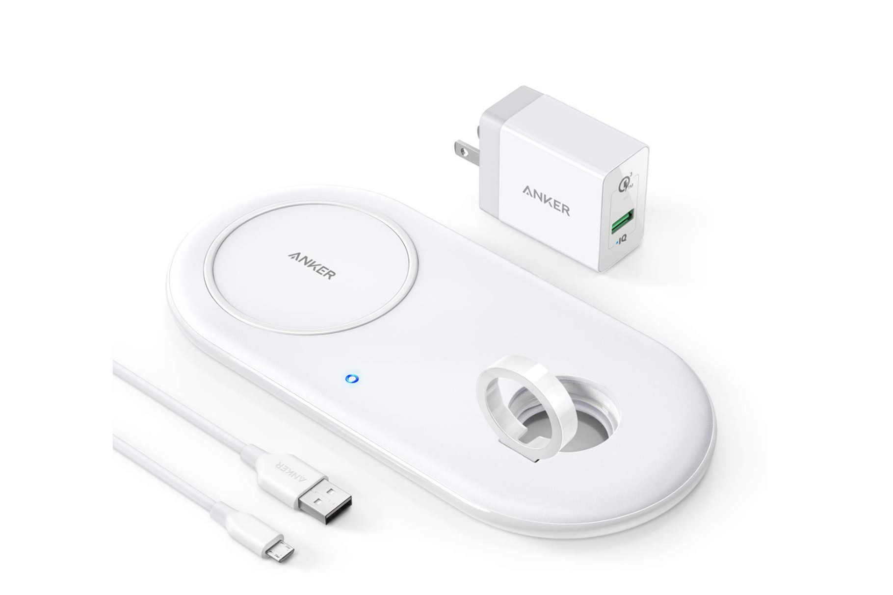 Anker 的 PowerWave+ Pad with Watch Holder 能够一起为 iPhone 和 Apple Watch 无线充电,它的电源线和 Watch 支架能够收起来,便利旅途中带着。支撑的设备包含 Watch Series 4/3/2 以及 iPhone XS/XS Max/XR/X/8。