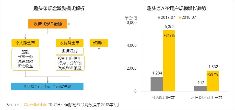 QuestMobile 数据显现,2018 年 7 月趣头条 App 月活泼用户数打破 5000 万,同比增加超 300%,名副其实为业界增加黑马。