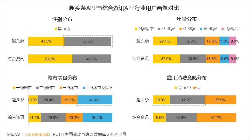 趣头条用户散布在更下沉城市区域,线上消费志愿较高,女人用户更杰出